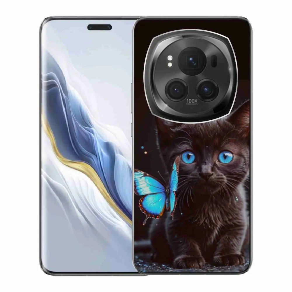 Pružný gelový obal mmCase s obrázkem na Honor Magic 6 Pro 5G - černé kotě 3