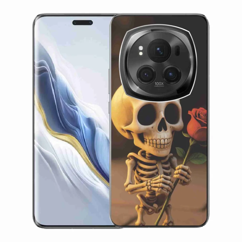 Pouzdro na Honor Magic 6 Pro 5G - kostlivec s růží poskytuje všechny výhody gelových obalů, a to v zajímavém designu.
