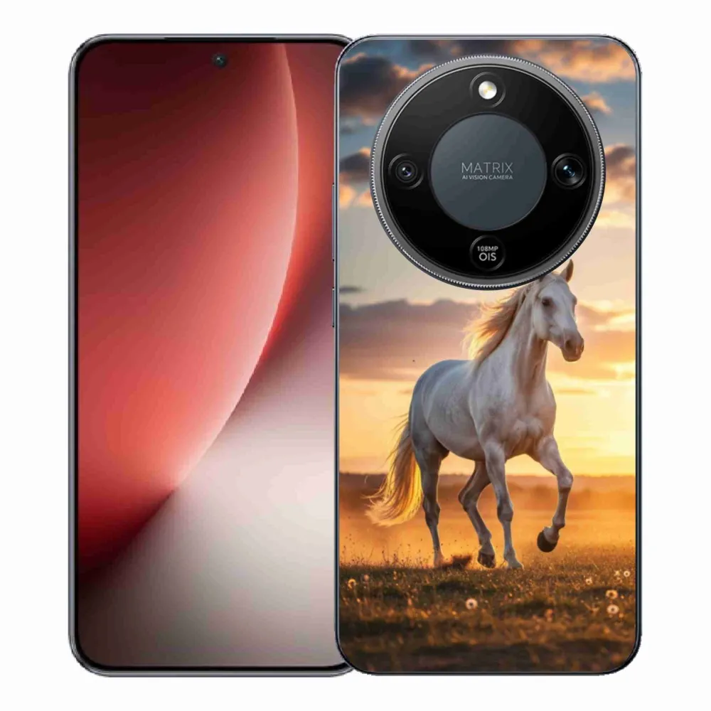 Pružný gelový obal mmCase s obrázkem na Honor Magic 8 Lite 5G - běžící bílý kůň 2