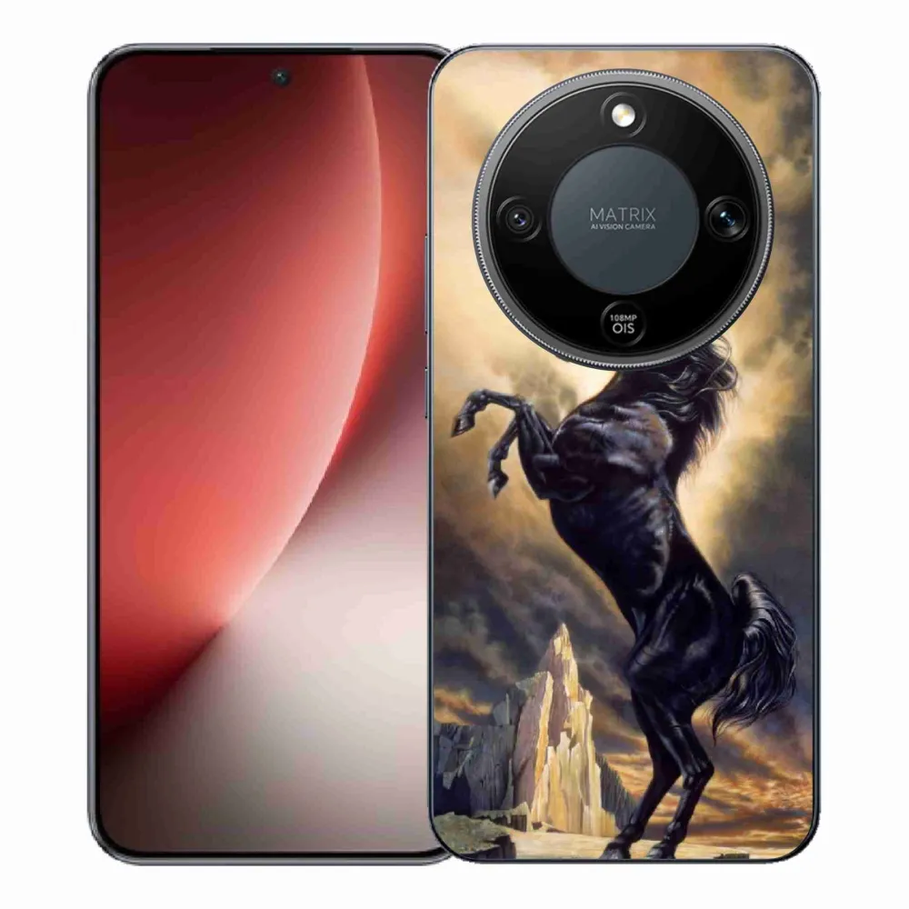 Pružný gelový obal mmCase s obrázkem na Honor Magic 8 Lite 5G - černý kreslený kůň