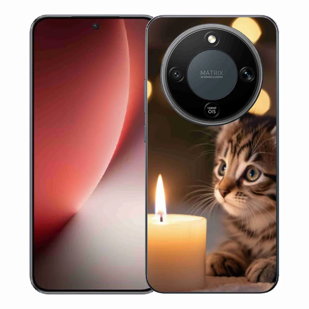 Pružný gelový obal mmCase s obrázkem na Honor Magic 8 Lite 5G - kotě a svíčka