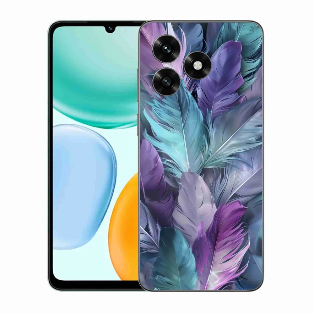 Pouzdro na Honor X5c Plus - barevné peří 2 poskytuje všechny výhody gelových obalů, a to v zajímavém designu.