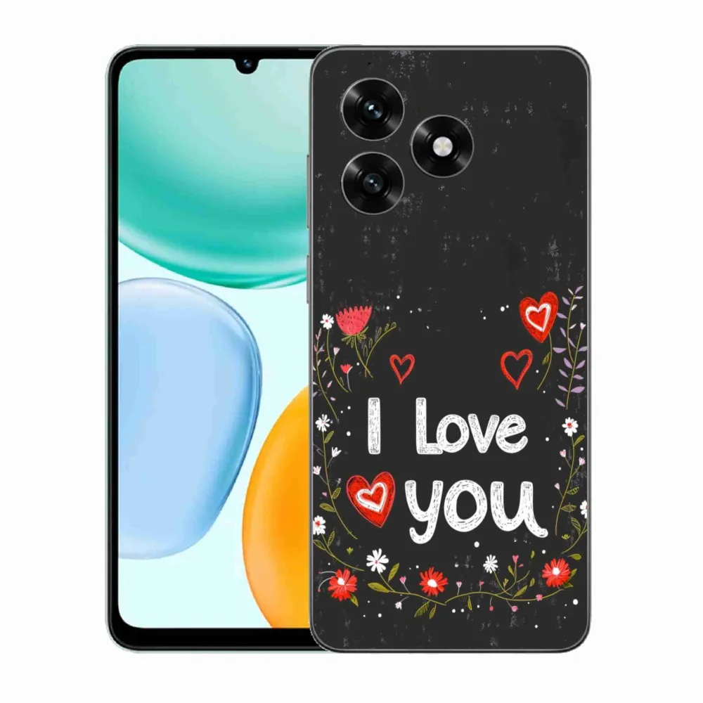 Pouzdro na Honor X5c Plus - I love you černé pozadí poskytuje všechny výhody gelových obalů, a to v zajímavém designu.