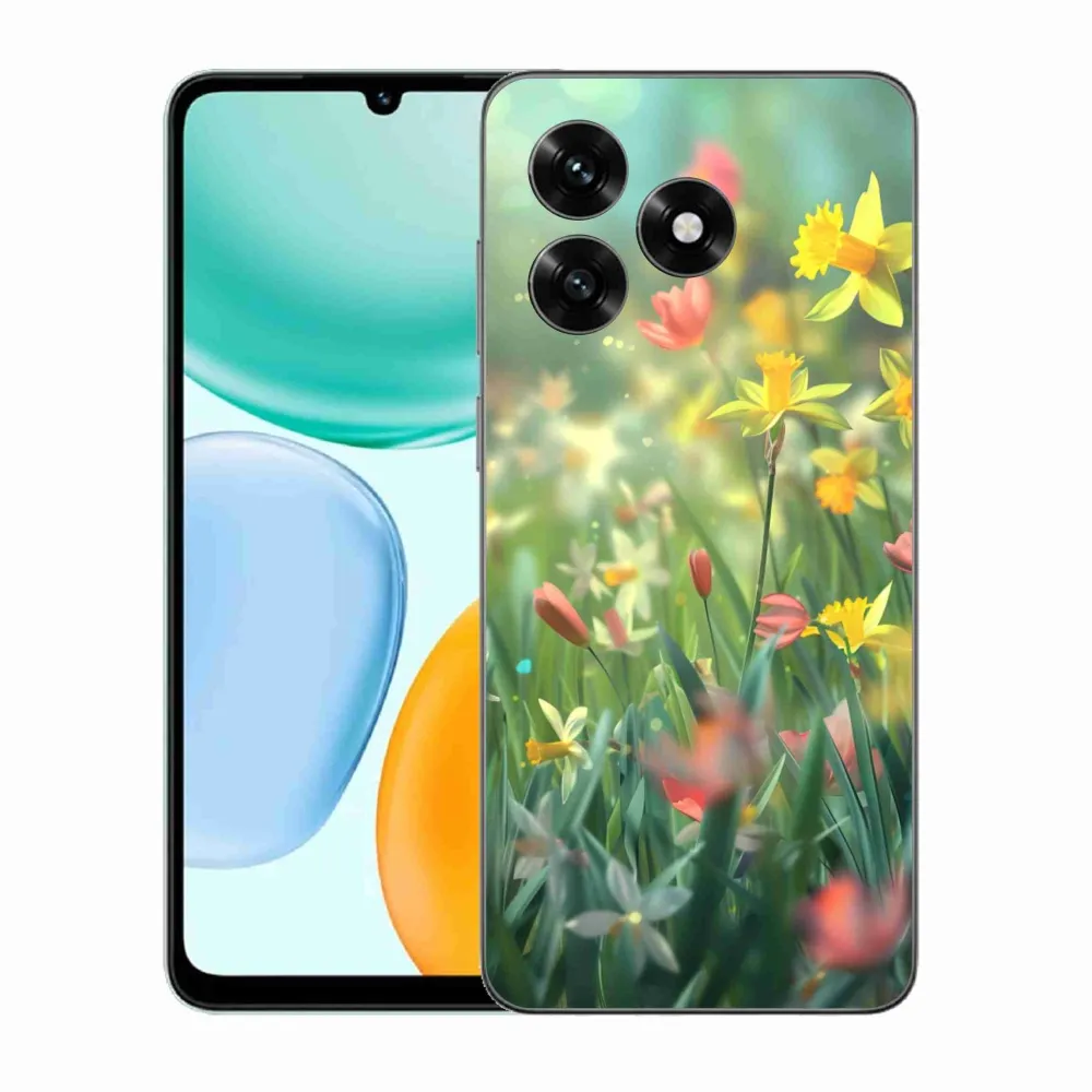 Květinové pouzdro na Honor X5c Plus - jarní květy poskytuje všechny výhody gelových obalů, a to v zajímavém designu.