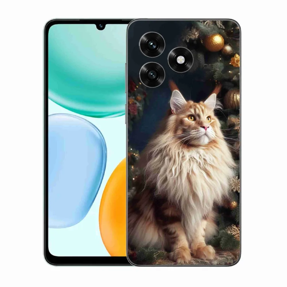 Vánoční pouzdro na Honor X5c Plus - kočka u stromku poskytuje všechny výhody gelových krytů, a to v zajímavém designu.