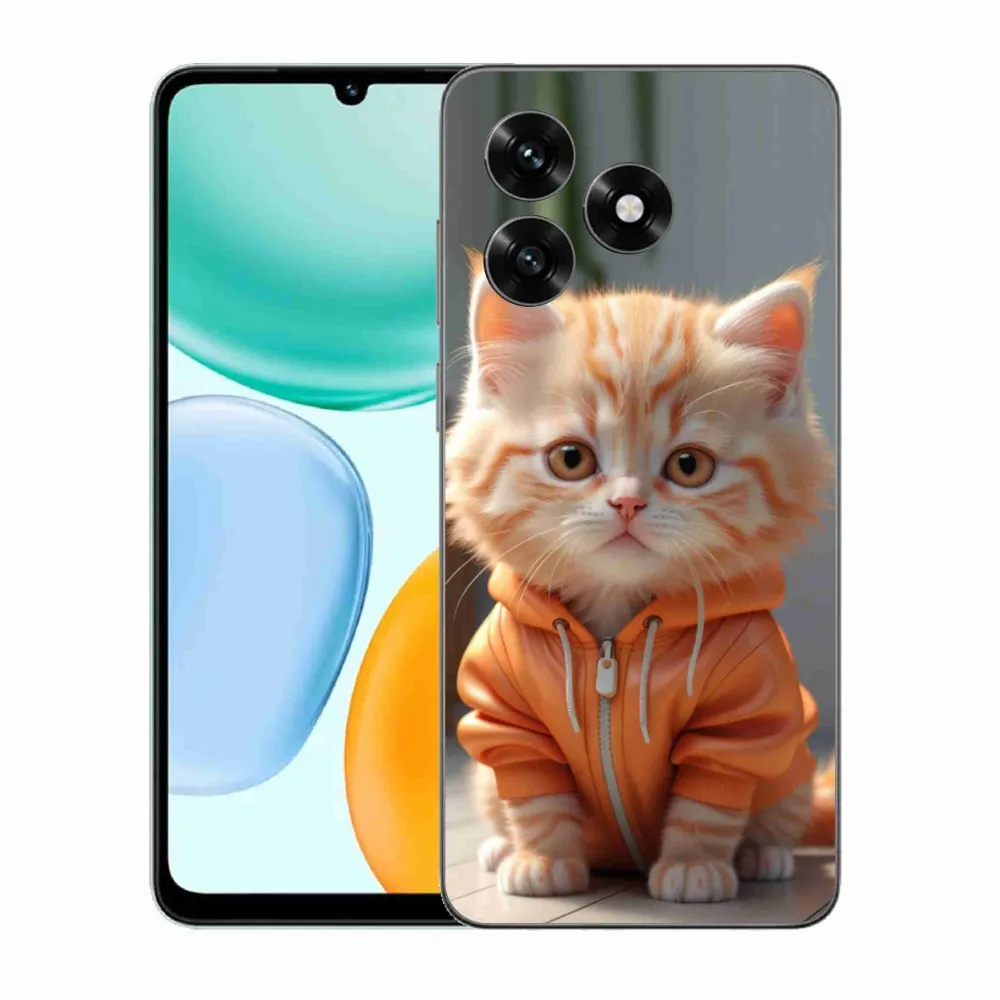 Kočičí pouzdro na Honor X5c Plus - kotě v mikině poskytuje všechny výhody gelových obalů, a to v zajímavém designu.