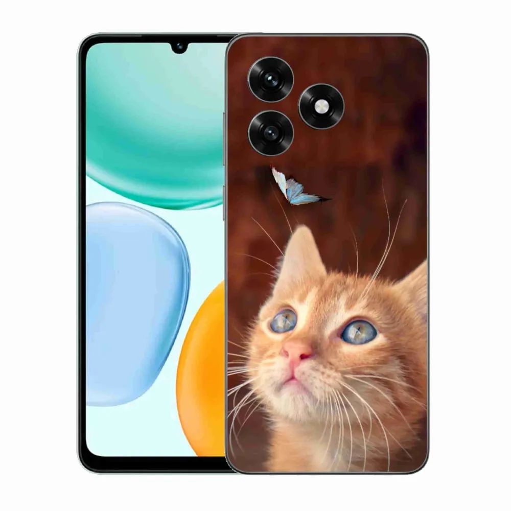 Motýlí pouzdro na Honor X5c Plus - motýl a kotě poskytuje všechny výhody gelových krytů, a to v zajímavém designu.