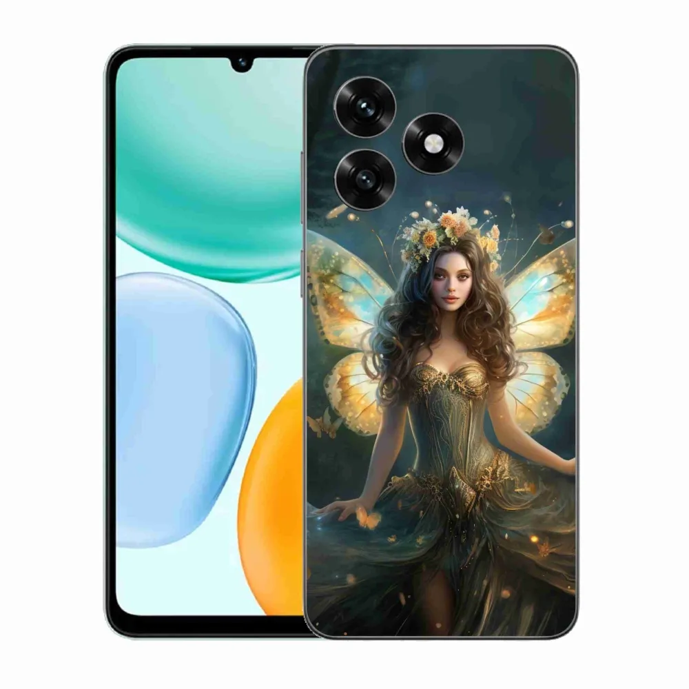 Motýlí pouzdro na Honor X5c Plus - motýlí žena poskytuje všechny výhody gelových krytů, a to v zajímavém designu.