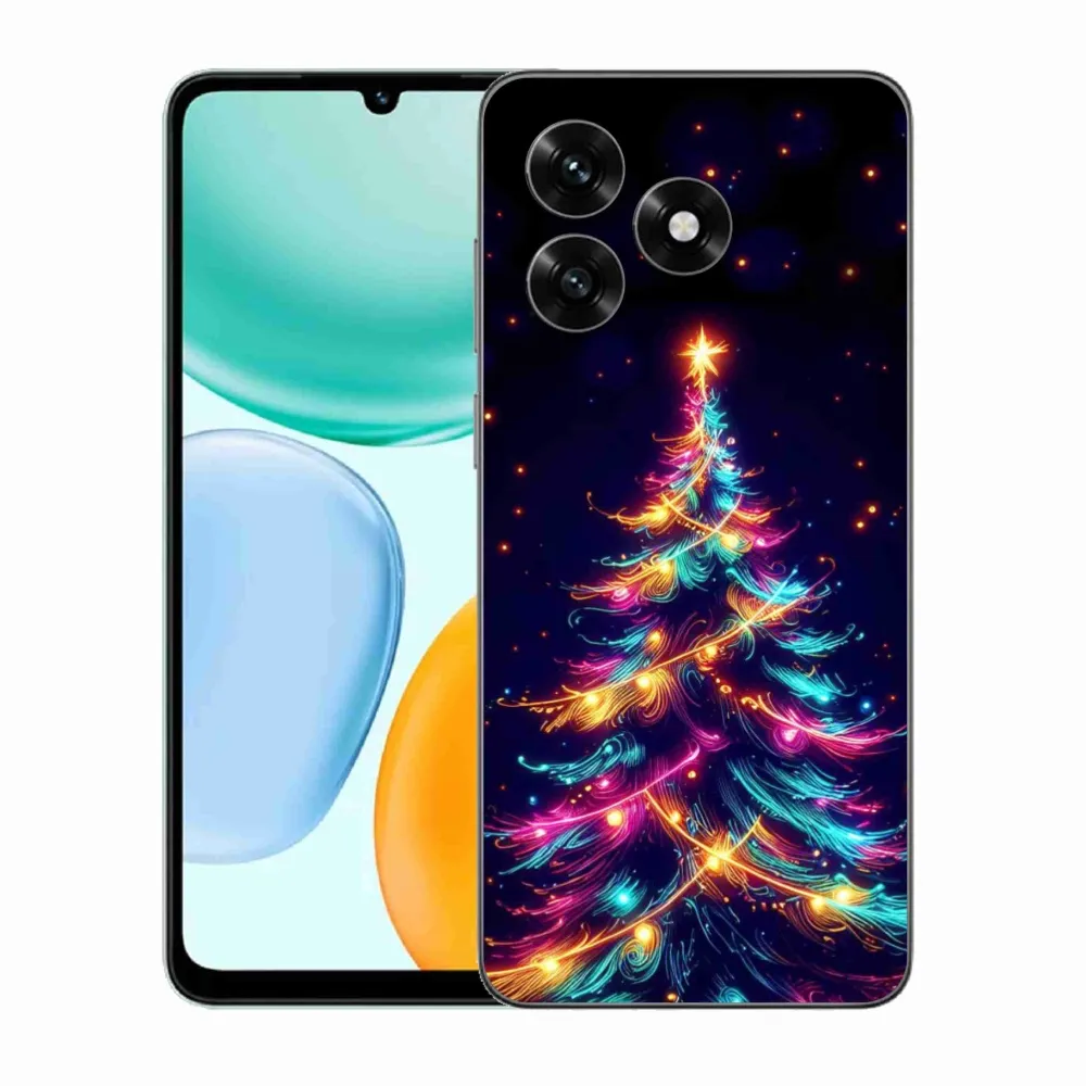Vánoční pouzdro na Honor X5c Plus - neonový vánoční stromek poskytuje všechny výhody gelových obalů, a to v zajímavém designu.