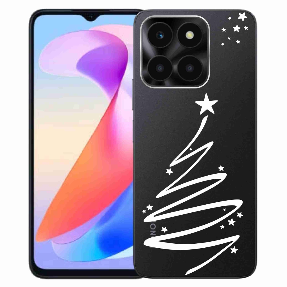 Vánoční pouzdro na Honor X6a - bílý stromeček (pozadí krytu je průhledné) poskytuje všechny výhody gelových krytů, a to v zajímavém designu.