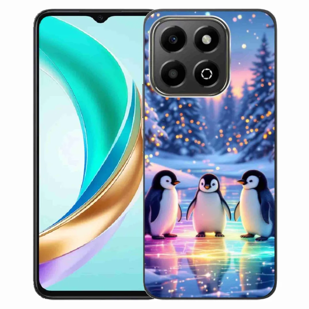 Vánoční pouzdro na Honor X6b - tučnáci poskytuje všechny výhody gelových obalů, a to v zajímavém designu.