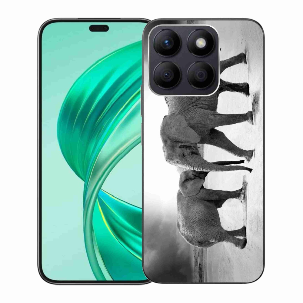 Zvířecí pouzdro na Honor X8b - černobílí sloni poskytuje všechny výhody gelových obalů, a to v zajímavém designu.