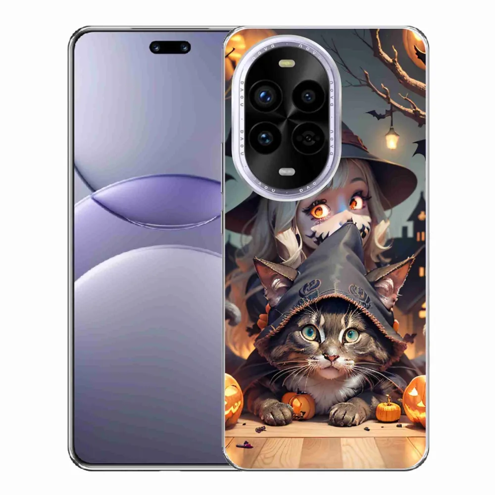 Kočičí pouzdro na Huawei Nova 13 Pro 5G - čarodějnice s kočkou poskytuje všechny výhody gelových krytů, a to v zajímavém designu.