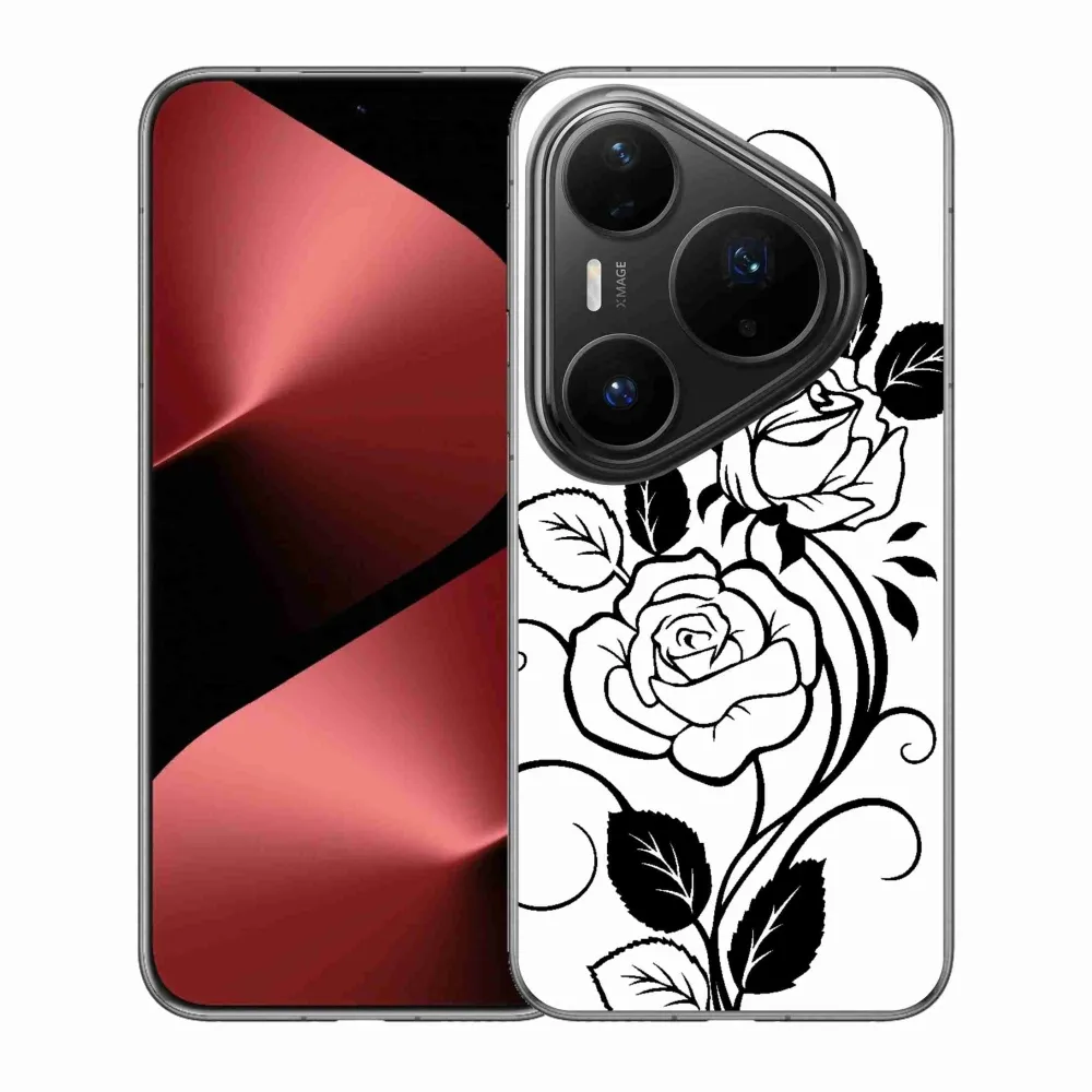 Květinové pouzdro na Huawei Pura 80 Pro - černobílá růže poskytuje všechny výhody gelových obalů, a to v zajímavém designu.