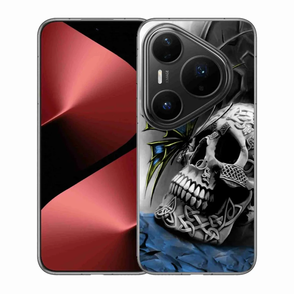 Pružný gelový obal mmCase s obrázkem na Huawei Pura 80 Pro - motýl a lebka