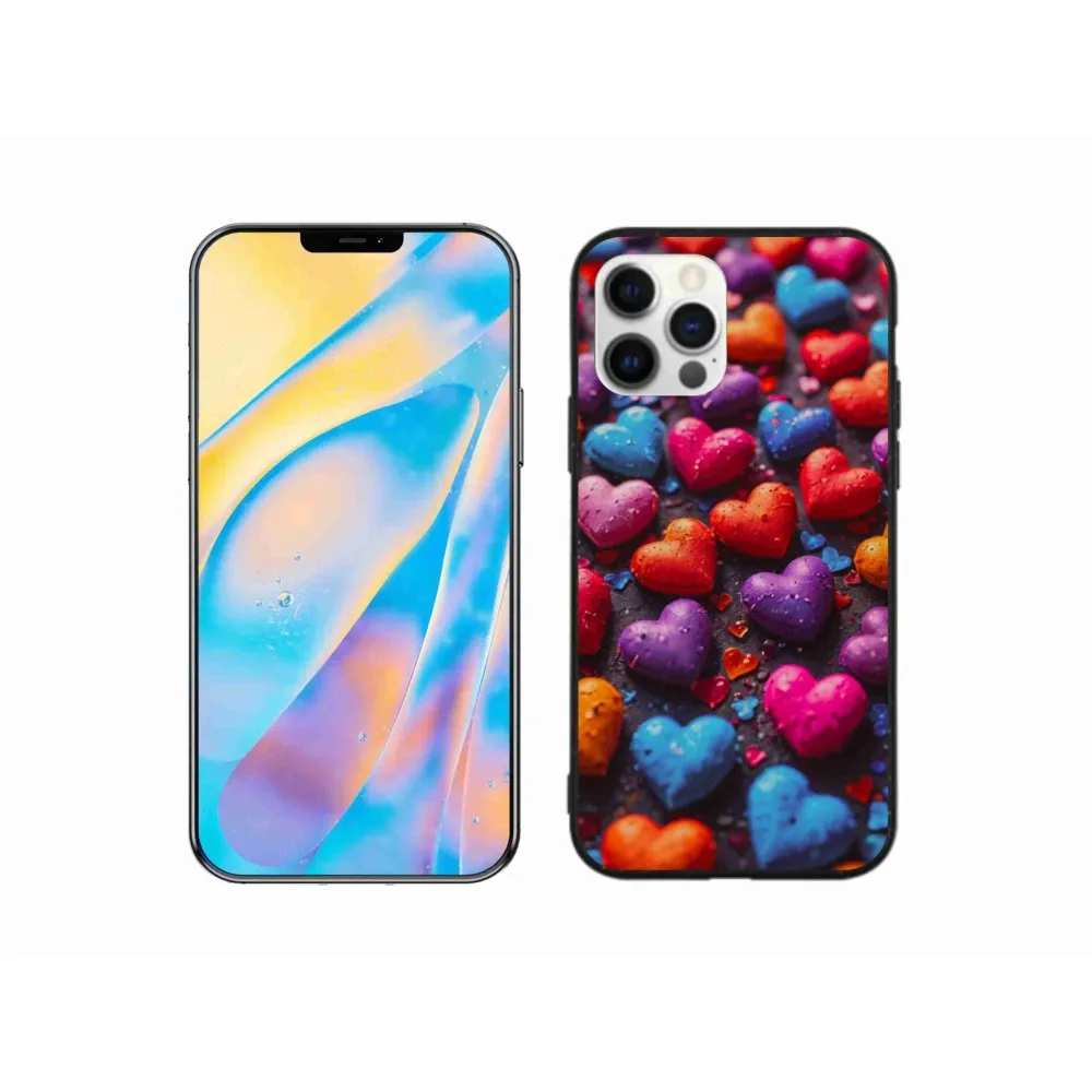 Pouzdro na iPhone 12 - barevná srdce poskytuje všechny výhody gelových obalů, a to v zajímavém designu.