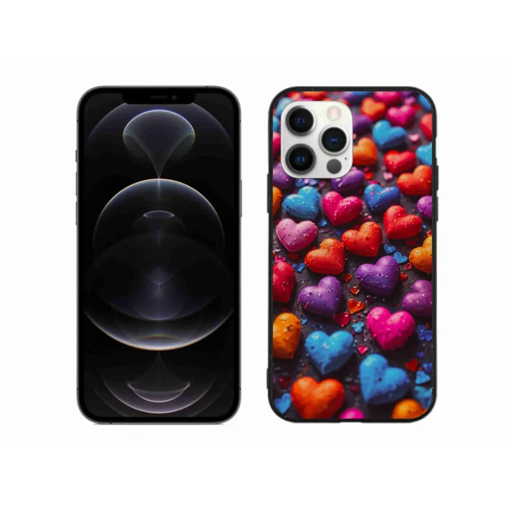 Pouzdro na iPhone 12 Pro Max - barevná srdce poskytuje všechny výhody gelových obalů, a to v zajímavém designu.