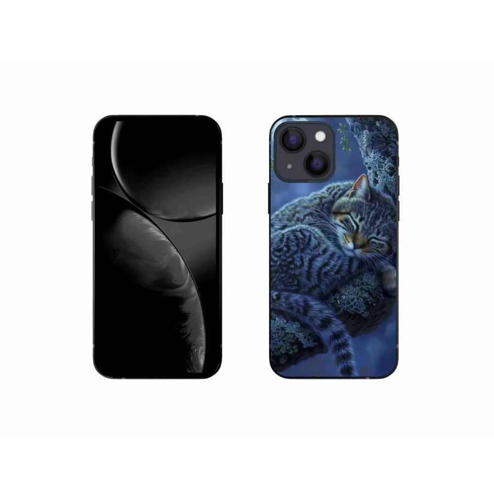 Kočičí pouzdro na iPhone 13 Mini - spící kočka poskytuje všechny výhody gelových obalů, a to v zajímavém designu.