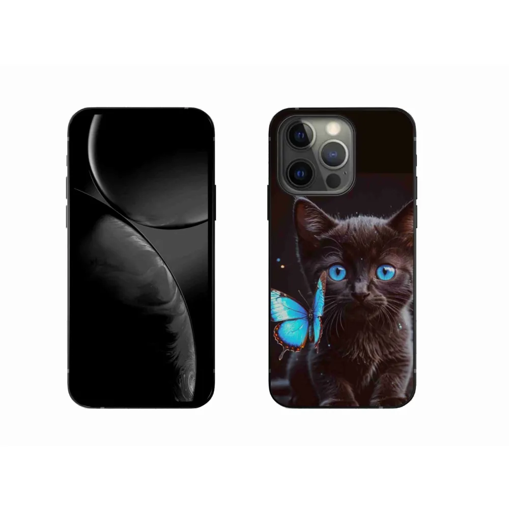 Pružný gelový obal mmCasse s obrázkem na iPhone 13 Pro - černé kotě 3