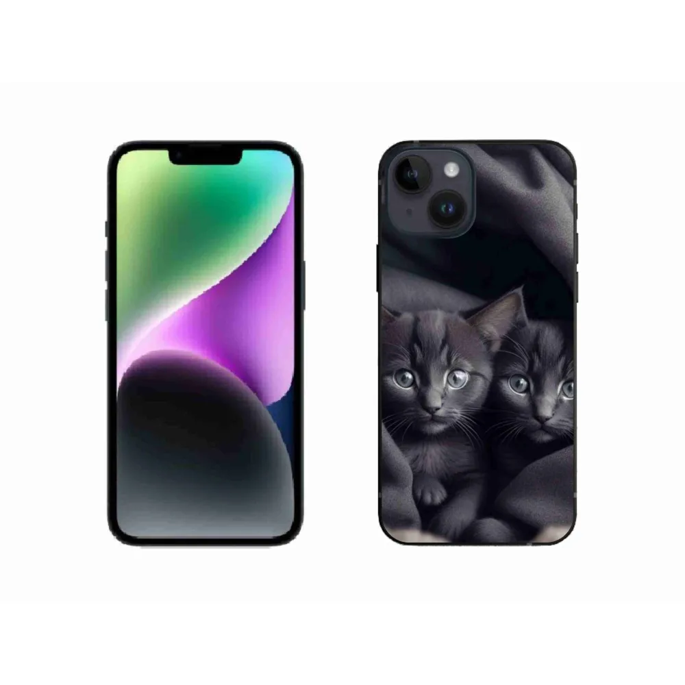 Kočičí pouzdro na iPhone 14 - kočičí duo poskytuje všechny výhody gelových obalů, a to v zajímavém designu.