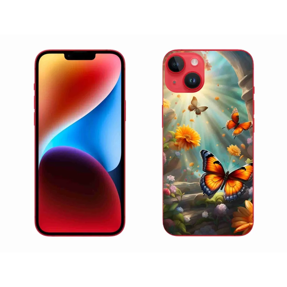 Pružný gelový obal mmCase s obrázkem na iPhone 14 Plus - motýlí zahrada 2