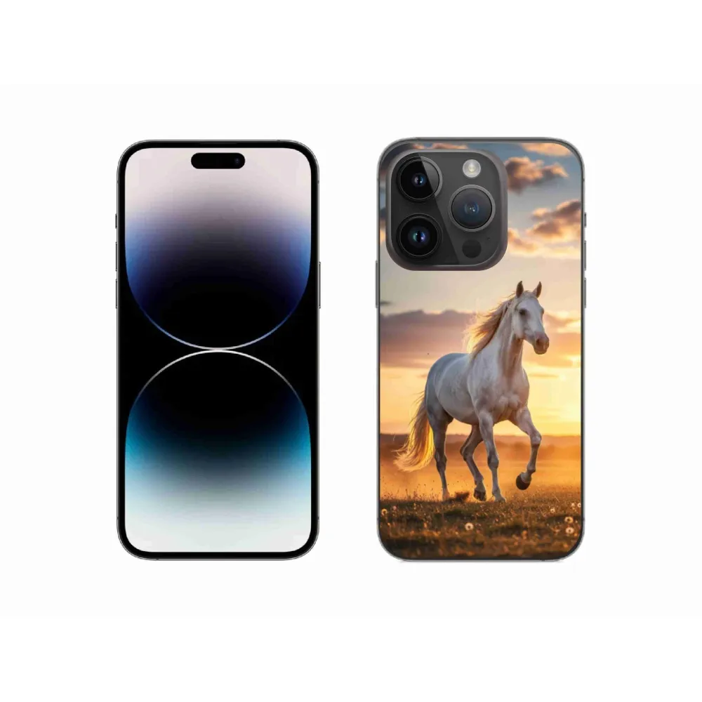 Pouzdro s motivem koně na iPhone 14 Pro - běžící bílý kůň 2 poskytuje všechny výhody gelových krytů, a to v zajímavém designu.