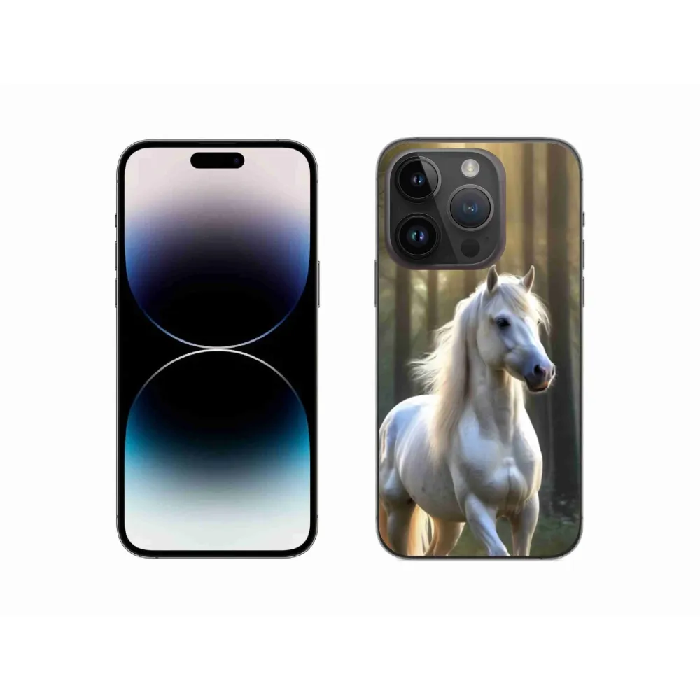 Pouzdro s motivem koně na iPhone 14 Pro - bílý kůň 3 poskytuje všechny výhody gelových krytů, a to v zajímavém designu.
