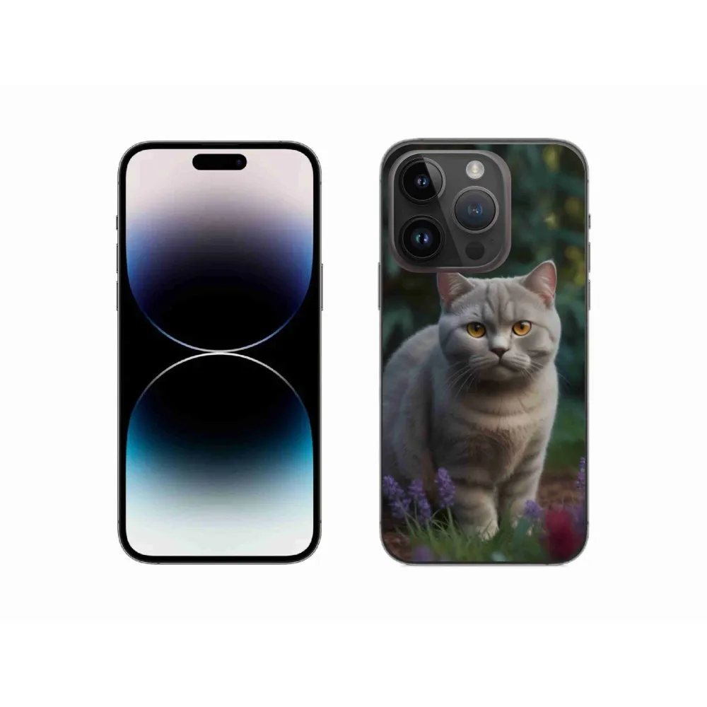 Pružný gelový obal mmCase s obrázkem na iPhone 14 Pro - britská kočka