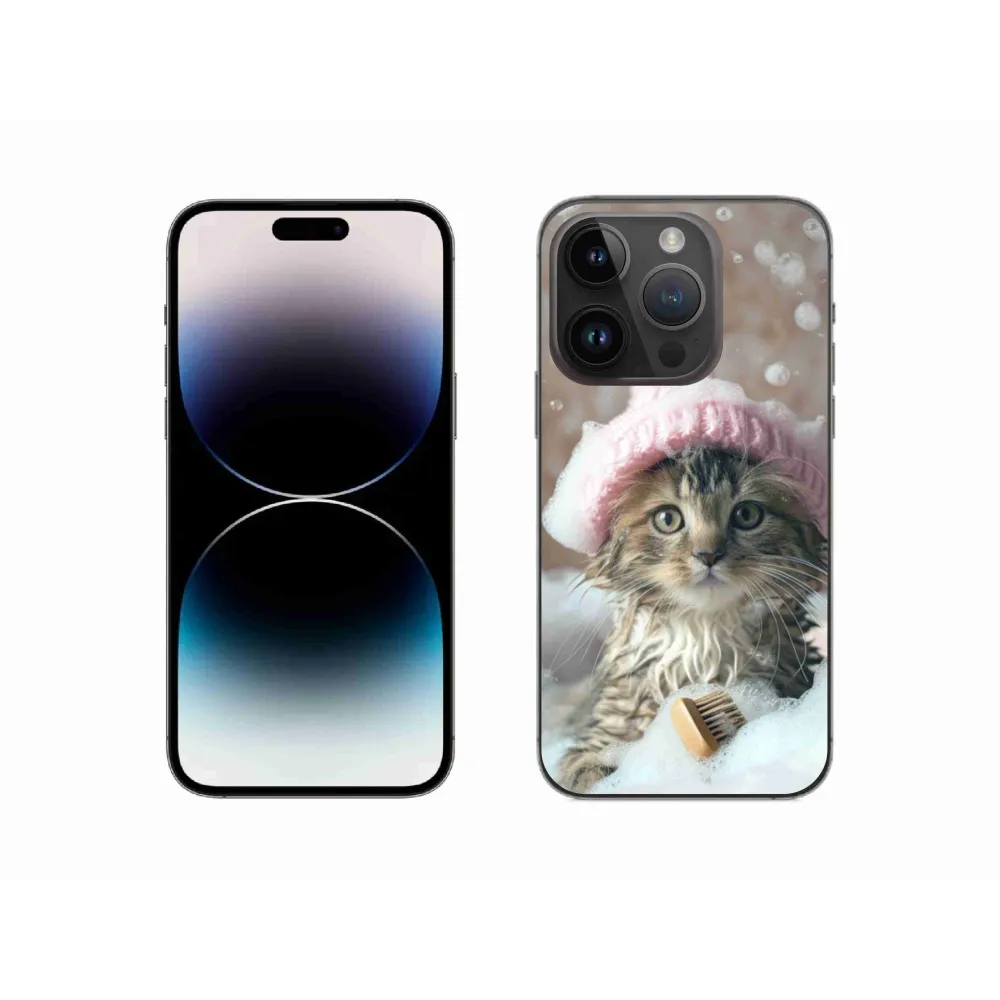 Gelový kryt mmCase na iPhone 14 Pro - kotě a koupel