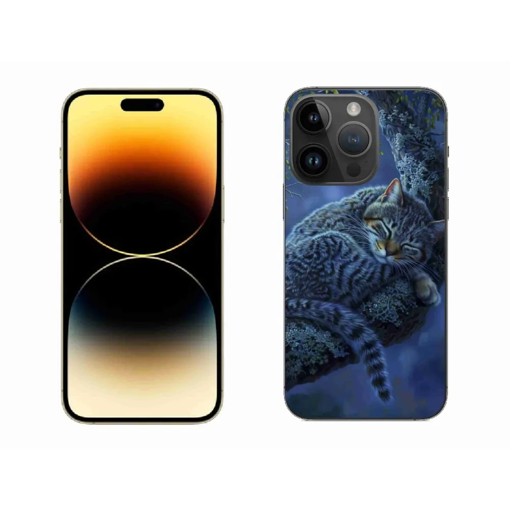 Kočičí pouzdro na iPhone 14 Pro Max - spící kočka poskytuje všechny výhody gelových obalů, a to v zajímavém designu.