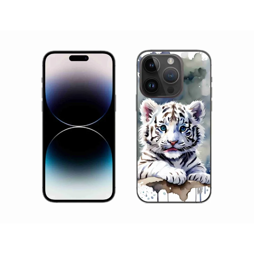 Psí pouzdro na iPhone 14 Pro - mládě bílého tygra poskytuje všechny výhody gelových obalů, a to v zajímavém designu.