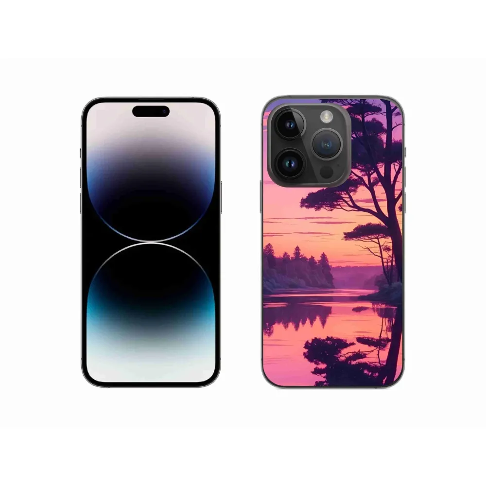 Pouzdro na iPhone 14 Pro - západ slunce nad jezerem poskytuje všechny výhody gelových obalů, a to v zajímavém designu.