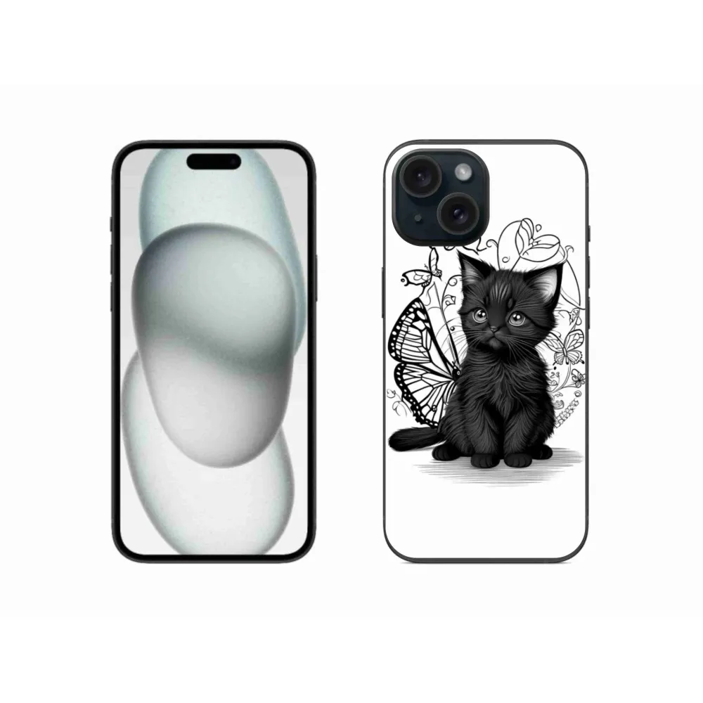 Kočičí pouzdro na iPhone 15 - černé kotě poskytuje všechny výhody gelových obalů, a to v zajímavém designu.