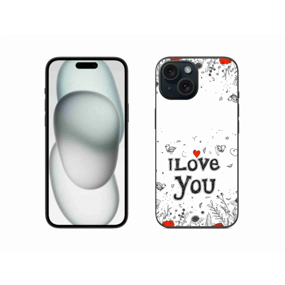 Pružný gelový obal mmCase s obrázkem na iPhone 15 - I love you bílé pozadí