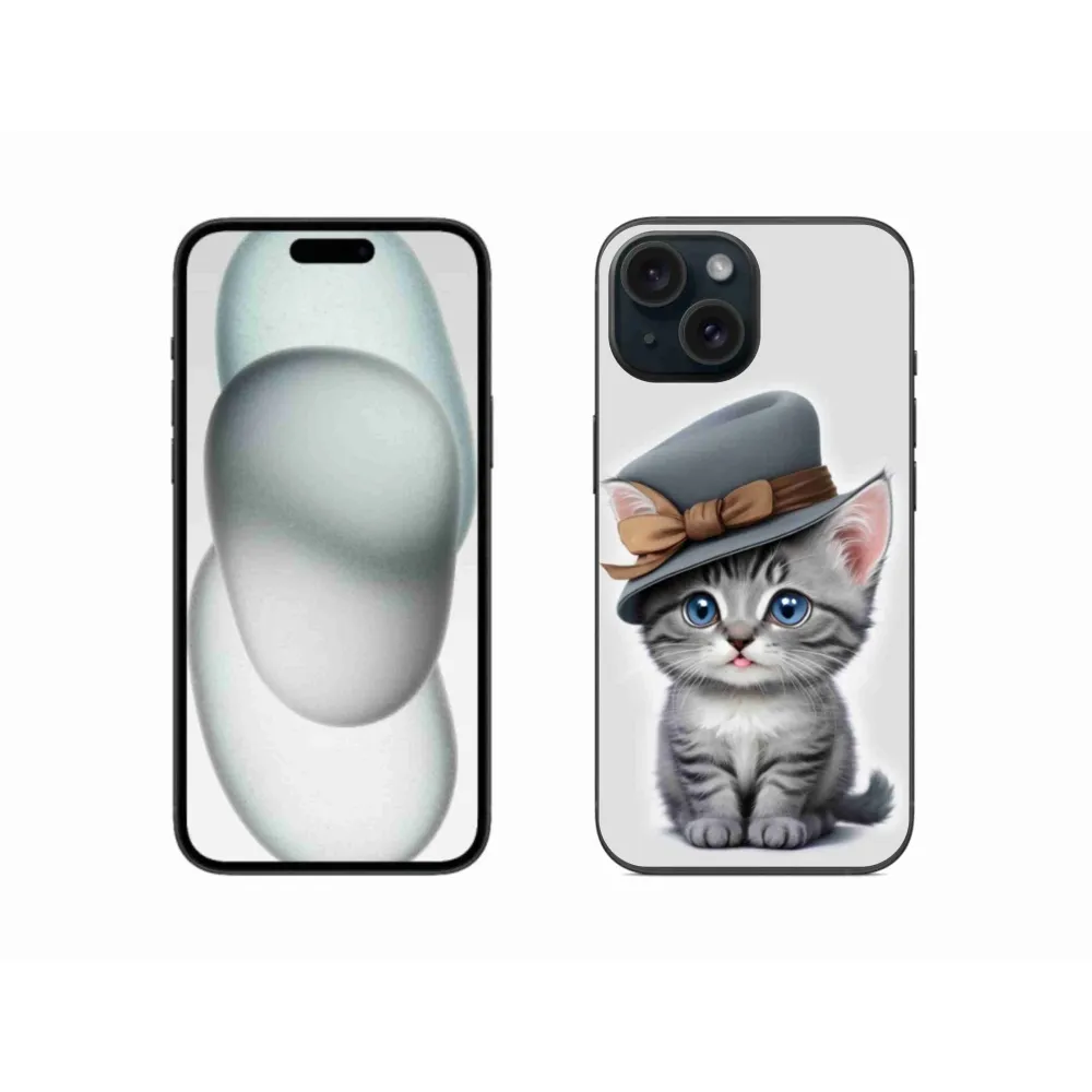 Kočičí pouzdro na iPhone 15 - kotě s kloboukem poskytuje všechny výhody gelových obalů, a to v zajímavém designu.