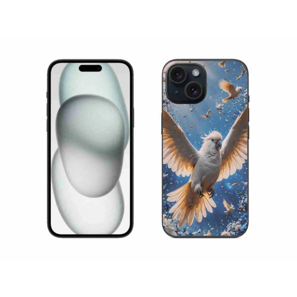 Ptačí pouzdro na iPhone 15 - papoušek kakadu poskytuje všechny výhody gelových obalů, a to v zajímavém designu.