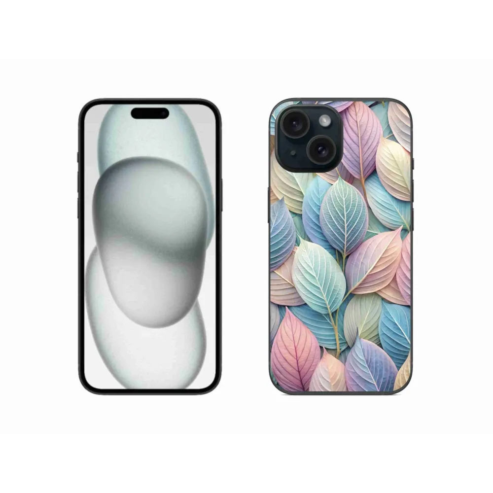 Pouzdro na iPhone 15 - pastelové listy poskytuje všechny výhody gelových obalů, a to v zajímavém designu.