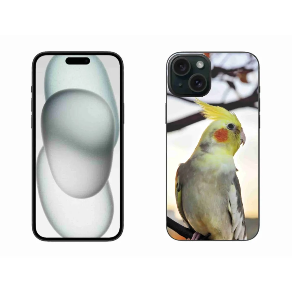 Ptačí pouzdro na iPhone 15 Plus - papoušek korela poskytuje všechny výhody gelových obalů, a to v zajímavém designu.