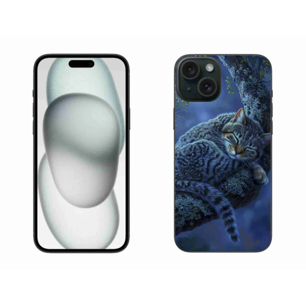 Kočičí pouzdro na iPhone 15 Plus - spící kočka poskytuje všechny výhody gelových obalů, a to v zajímavém designu.