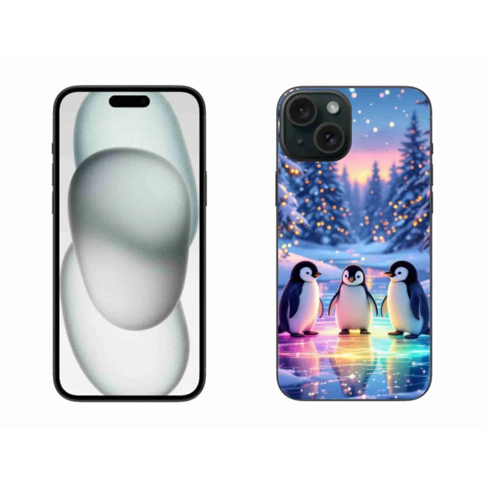 Pružný gelový obal mmCase s obrázkem na iPhone 15 Plus - tučnáci