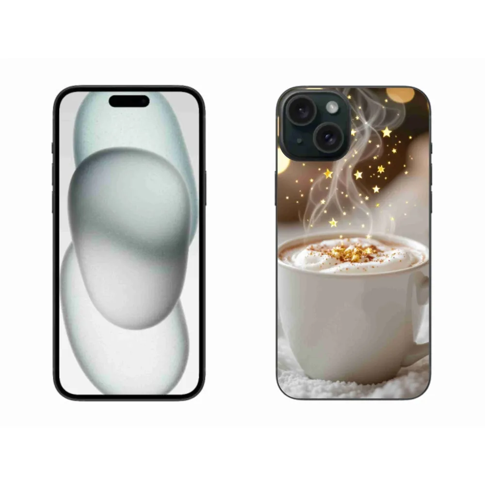 Vánoční pouzdro na iPhone 15 Plus - vánoční horký nápoj poskytuje všechny výhody gelových obalů, a to v zajímavém designu.
