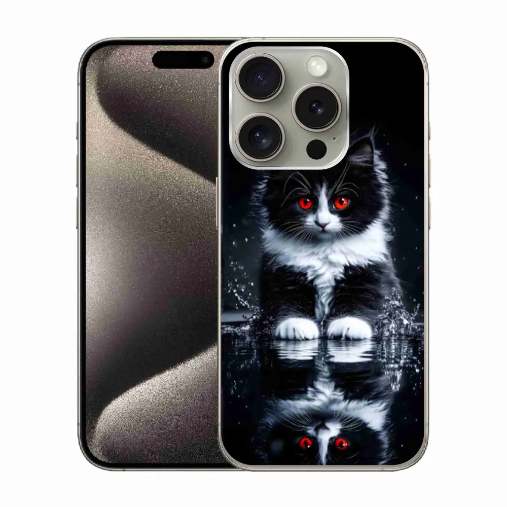 Pružný gelový obal mmCase s obrázkem na iPhone 15 Pro - černobílé kotě