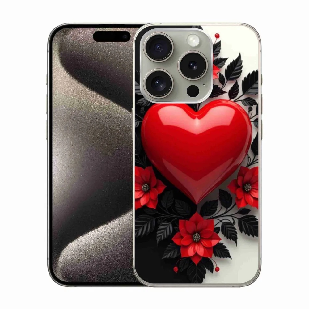 Pouzdro na iPhone 15 Pro - červené srdce poskytuje všechny výhody gelových obalů, a to v zajímavém designu.