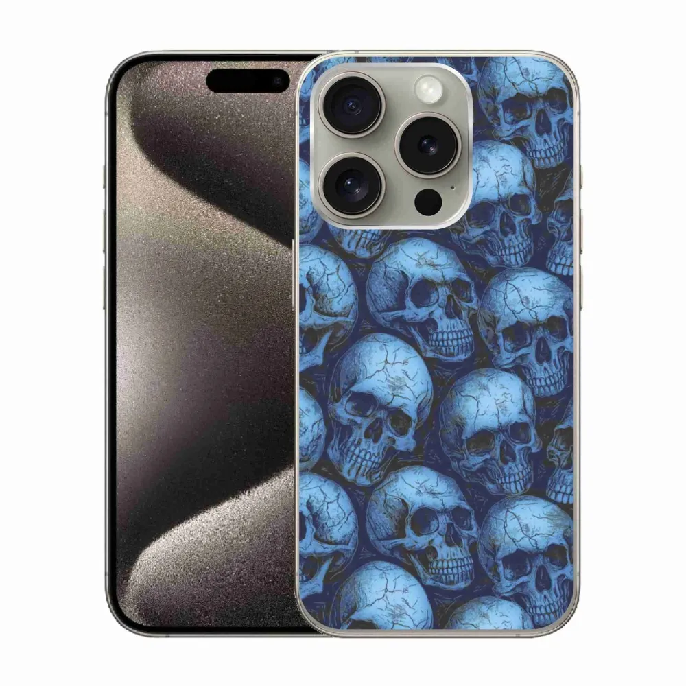 Pružný gelový obal mmCase s obrázkem na iPhone 15 Pro - lebky