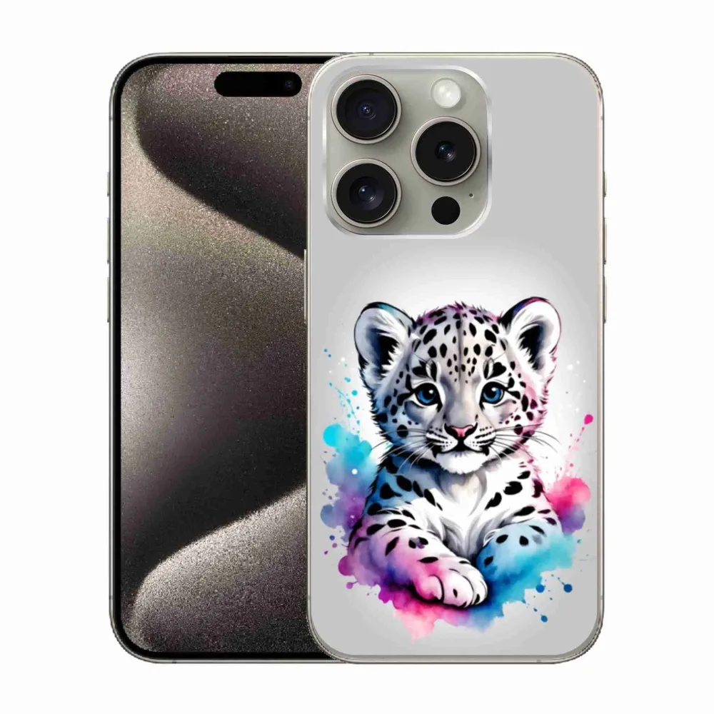 Kočičí pouzdro na iPhone 15 Pro - levhartí mládě poskytuje všechny výhody gelových obalů, a to v zajímavém designu.