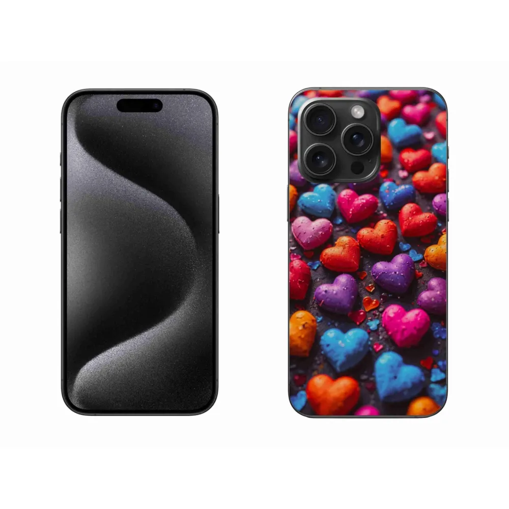 Pouzdro na iPhone 15 Pro Max - barevná srdce poskytuje všechny výhody gelových obalů, a to v zajímavém designu.