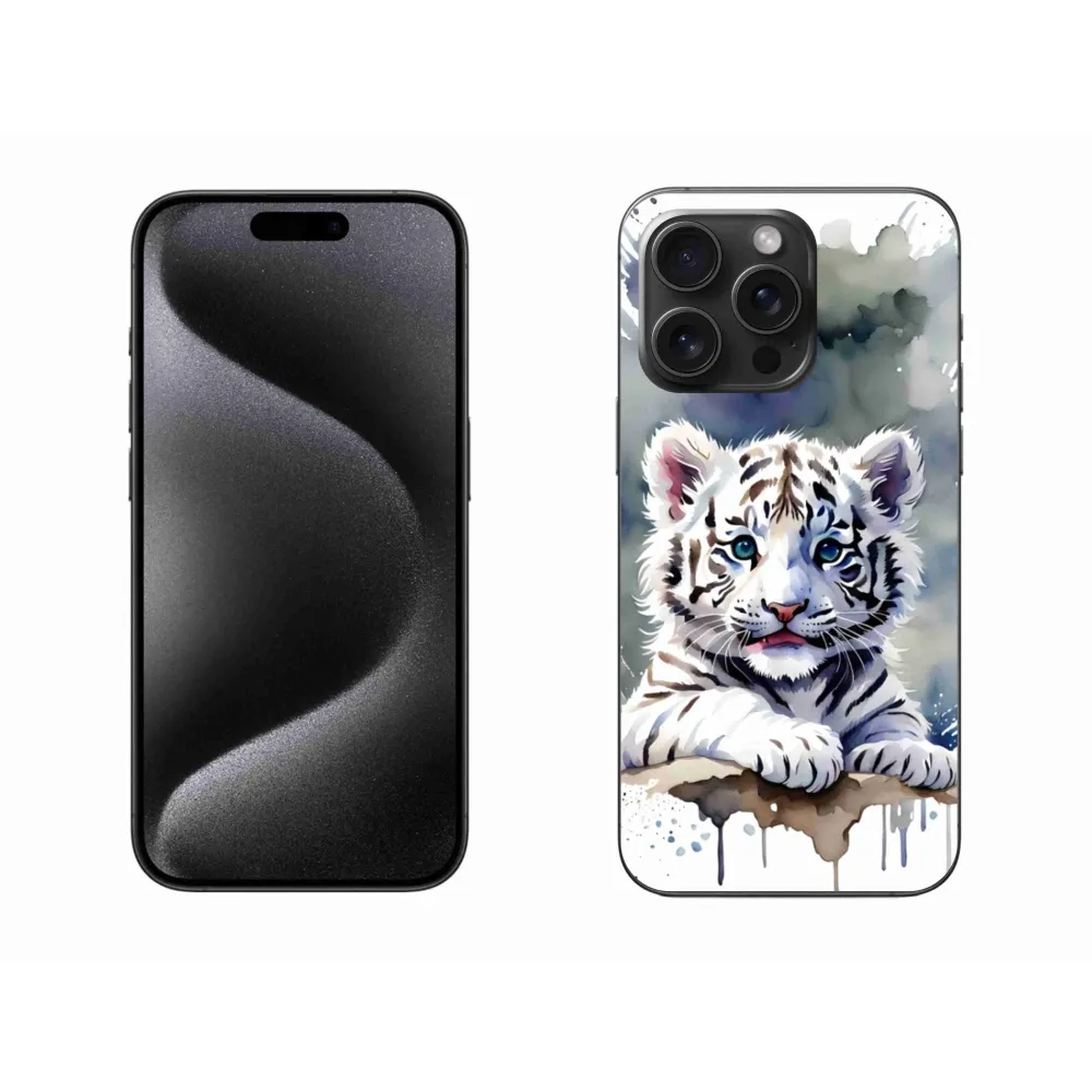 Psí pouzdro na iPhone 15 Pro Max - mládě bílého tygra poskytuje všechny výhody gelových obalů, a to v zajímavém designu.