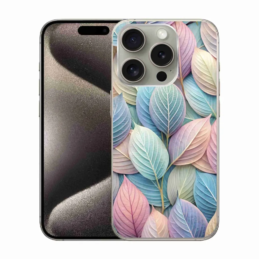 Pouzdro na iPhone 15 Pro - pastelové listy poskytuje všechny výhody gelových obalů, a to v zajímavém designu.