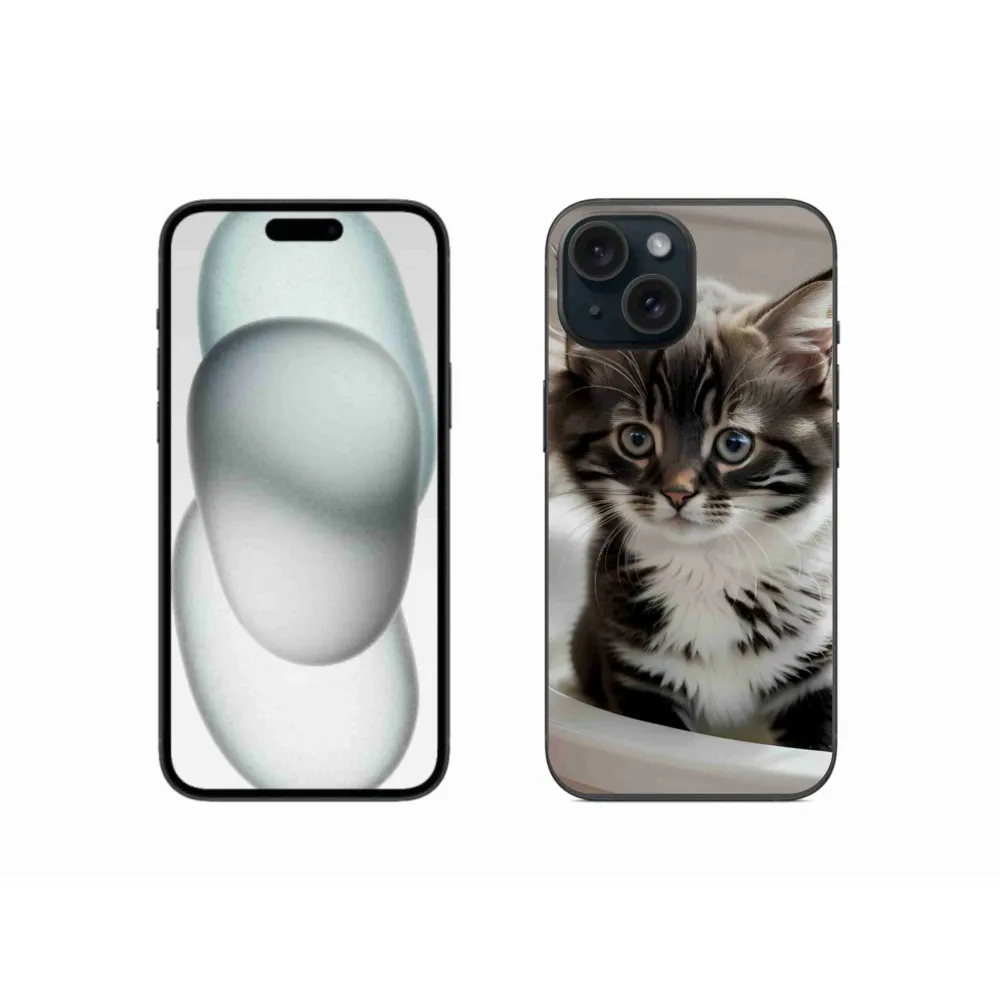 Pružný gelový obal mmCase s obrázkem na iPhone 15 - zvědavé kotě