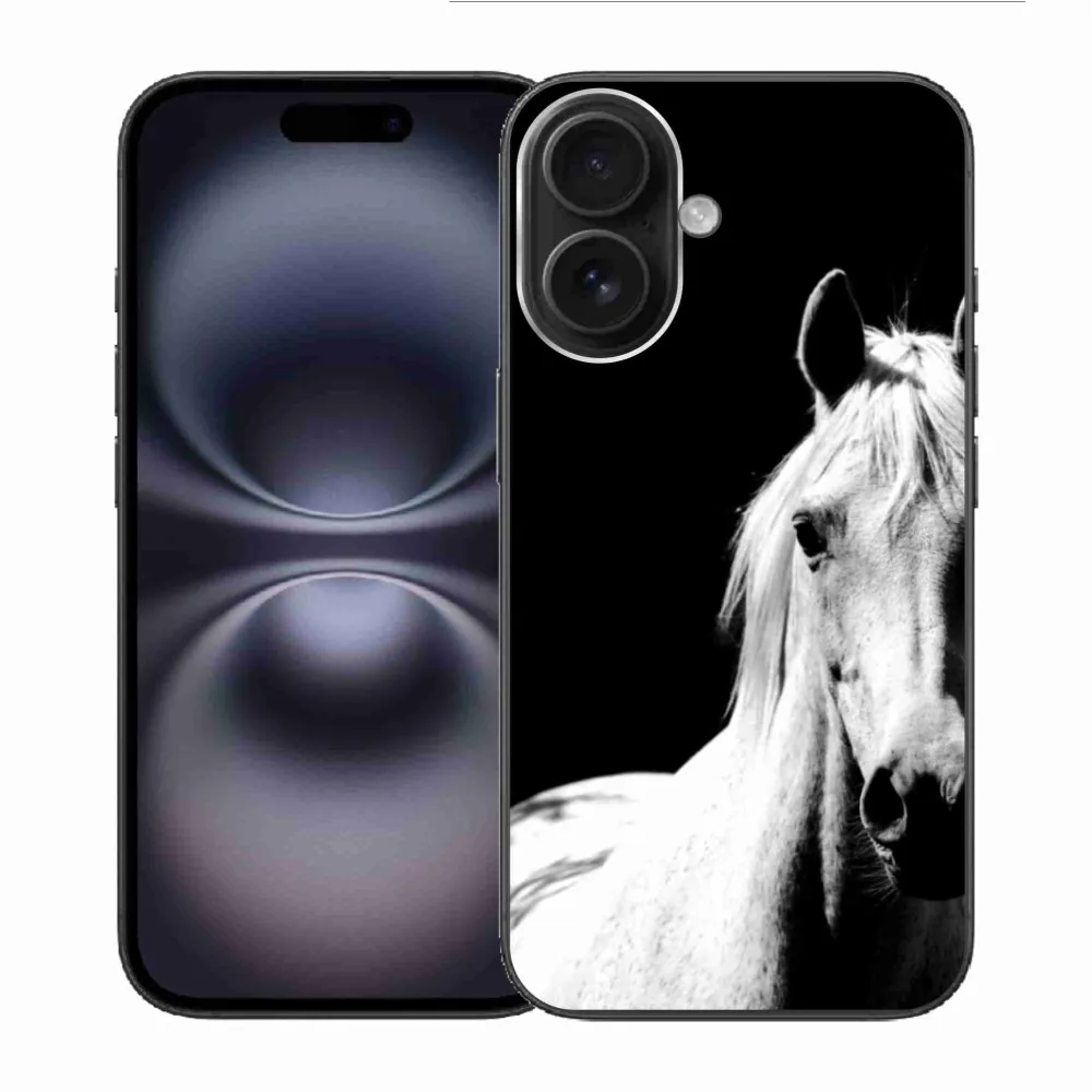 Pružný gelový obal mmCase s obrázkem na iPhone 16 - bílý kůň 5